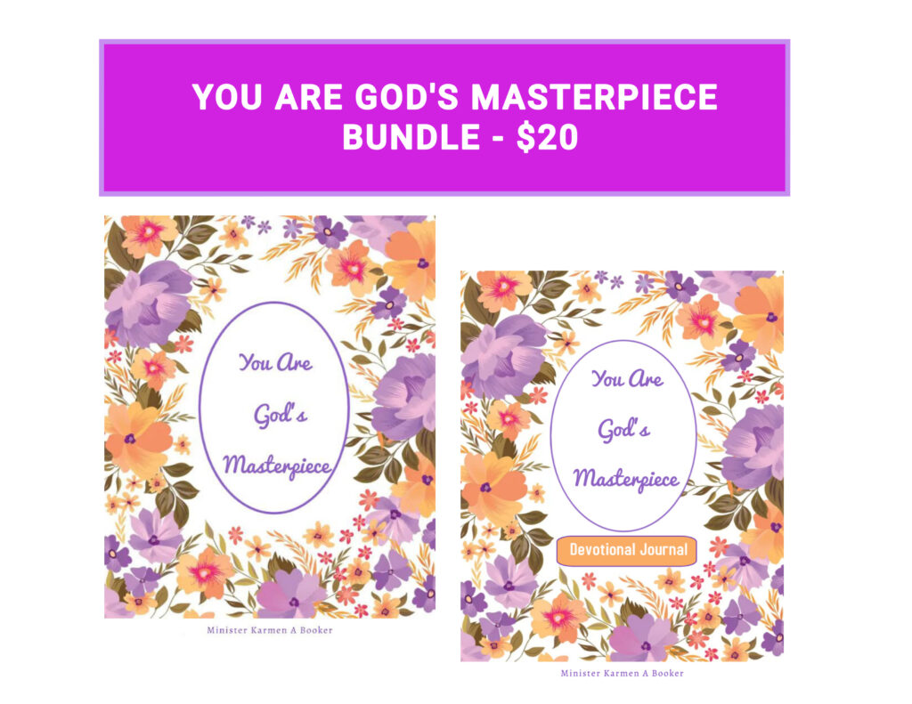 You Are God’s Masterpiece Devotional Journal Was Now $15 Sale Companion to the beloved book You Are God’s Masterpiece, this Devotional Journal offers guided reflections, Scriptures, prayers, and journaling prompts designed to deepen your understanding of your God-given identity. Each entry invites you to pause, reflect, and respond to God’s truth, helping you internalize the message that you are deeply known, unconditionally loved, and divinely designed.With space to write your thoughts, prayers, and personal revelations, this journal is perfect for morning devotionals, quiet time, or spiritual retreats. This devotional journal is a powerful resource to embrace healing, truth, and transformation. Quantity Enter an amount $ Add to Cart Add to Cart You may also like Previous Next Sale Creative Poetic Expression $20 Sale Your Greatness Within (Course) $45 Sale You Are God’s Masterpiece Bundle $20